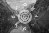 Net zero and carbon neutral concept.Globe Glass with Net zero icons In Green Forest With Sunlight. net zero greenhouse gas emissions target Climate neutral long term strategy on a green background.