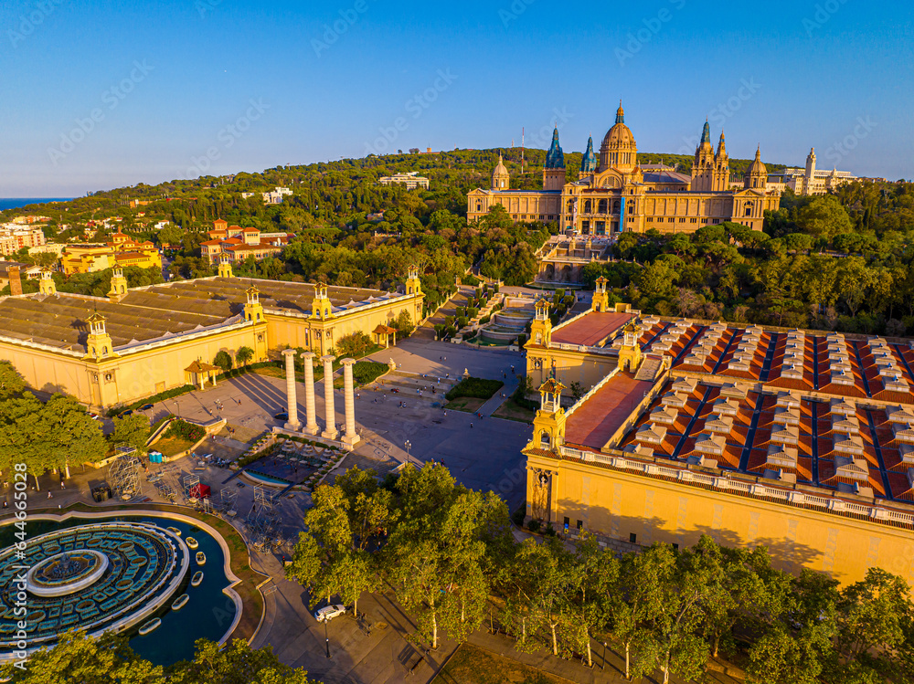 Aerial view of the Montjuïc, a hill in Barcelona, Catalonia, Spain