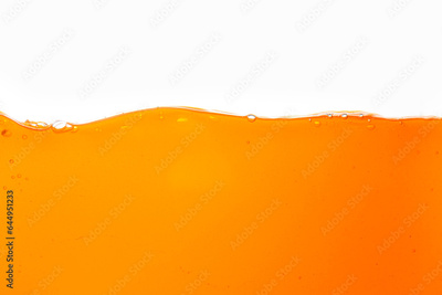 Macro orange juice texture isolated white background,Close-up Orange juice with bubbles on a white background.