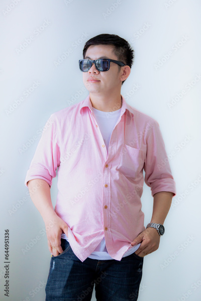 Asian man wearing sunglasses on background,Portrait of handsome young asian man wearing sunglasses, summer vacation concept