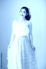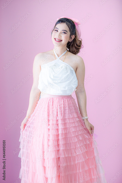 Asian woman on the background,Photo of young Asian girl on pink background,Asian woman wearing a skirt on a background