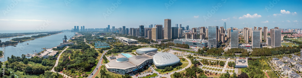 Aerial photography of modern urban architectural landscape in Rizhao, China