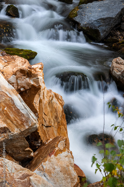 Water falls on Big Cottonwood creek in Utah during autumn time.long exposure.