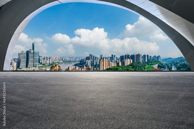 Asphalt road and urban skyline with modern buildings scenery in Chongqing, Sichuan Province, China. High Angle view.