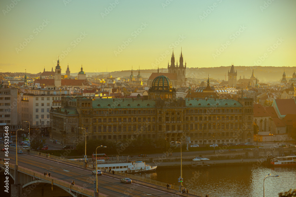 landscape panorama with church of our lady before tyn