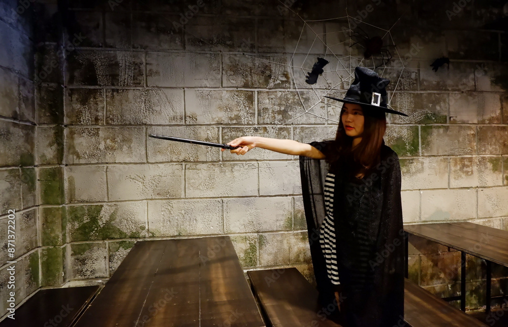 Beautifully illuminated Reed Flute Caves located in Guilin, Guangxi, China,