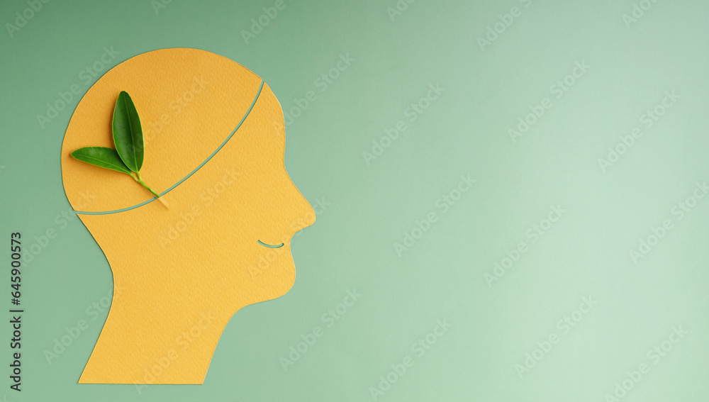 Optimistic, Optimistic Mind, Harmony and Environmentalism Person Concept. made by Paper and Real Green Leaf