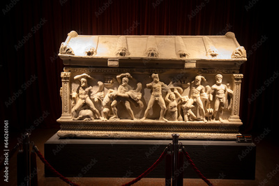 Antalya museum - Turkey, August 10, 2023, Ancient antique statues exhibited in the Museum of Antalya.