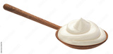 Sour cream in wooden spoon isolated on white background