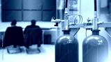 Industrial fire extinguishing system. Fire extinguishers at enterprise. Balloons to fight flame. Fire extinguishers in control room. Industrial security system. Monitoring center factory. Art focus