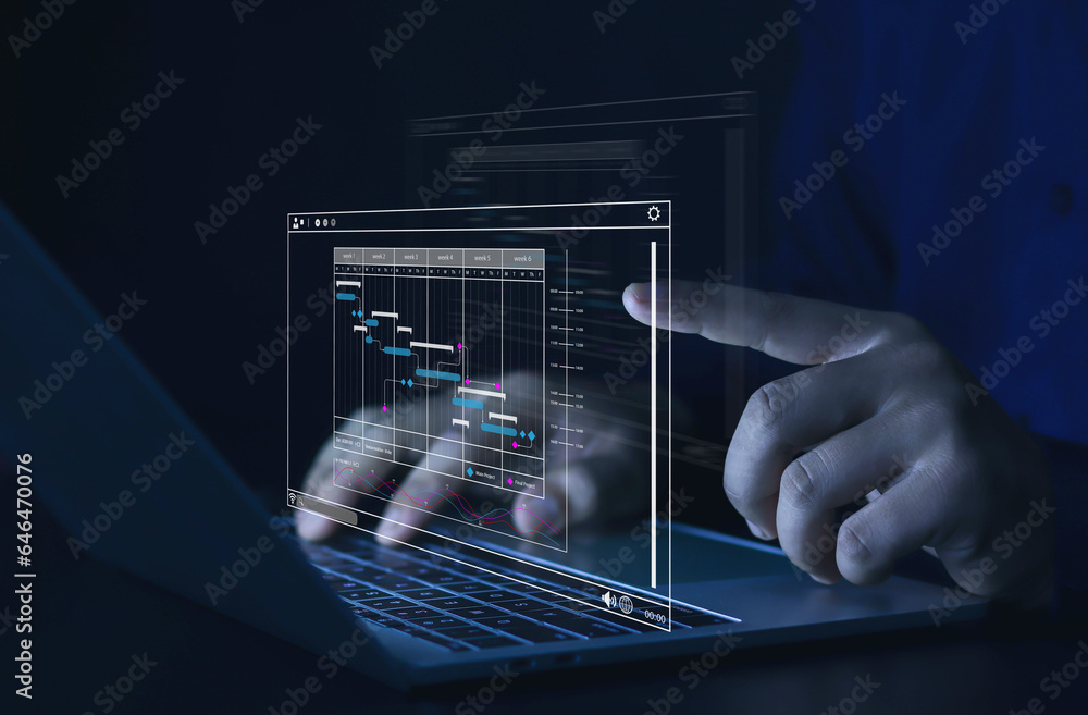 Businessman shows work project plans and updates work by planning milestones. Manager updates work Plan important activities by setting a schedule. Assess progress