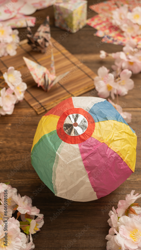 日本の紙ふうせんと桜