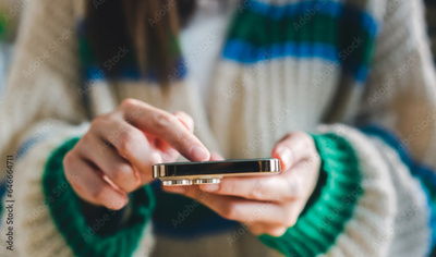 Human working on modern smartphone communication and digital online, mockup, technology, advertising, search information, creative design, social media, online marketing, chat, phone
