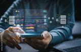 Analyst use phone working with business analytics and data management system, make a report with KPI and metrics connected to database.Corporate strategy for finance, operations, sales, marketing