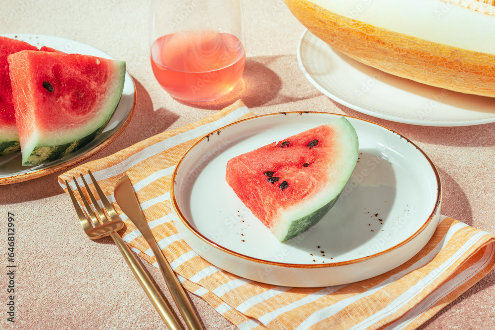 Fresh ripe sliced watermelon, yummy fresh summer fruit sweet dessert