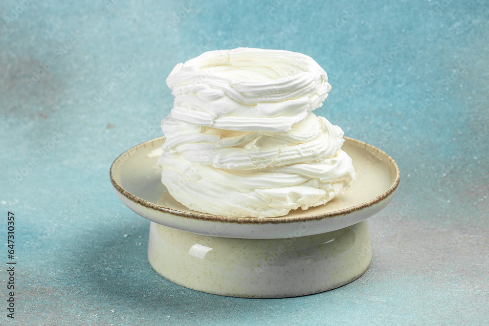 Dessert meringue cake on a light background, banner, menu, recipe place for text