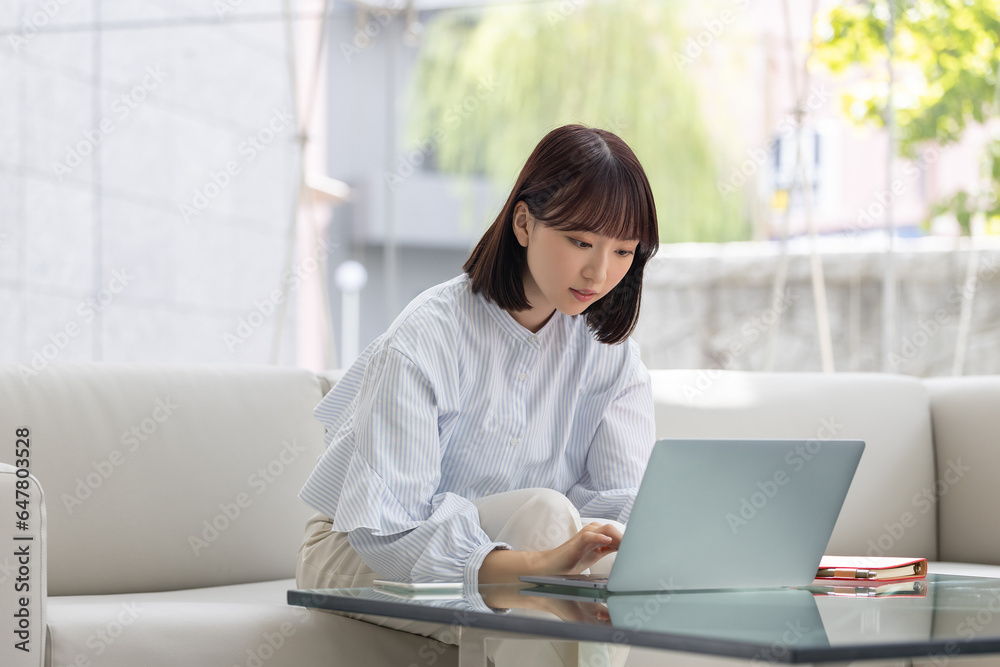 ノートパソコンを使うビジネスウーマン