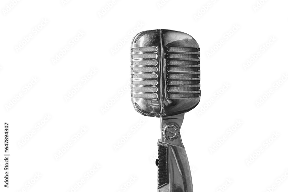 Wired Dynamic Retro Microphone Silver Metal Color On White Background Isolated