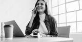Successful business woman having a phone call conversation in an office