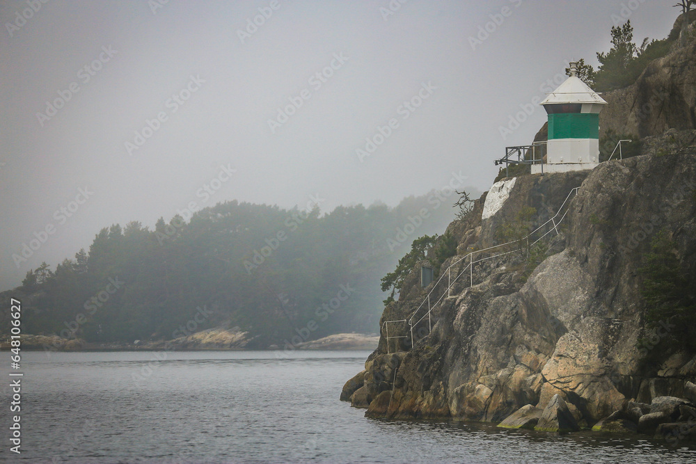 View from around the Swedish summer hotspot Sandhamn island, in the Stockholm Archipelago, taken on a foggy September day.