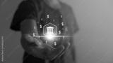 Business network and connection concept, businessman holding global business icon of technology, data for business in the further.