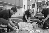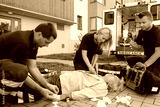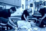 Paramedics giving firstaid to unconscious patient