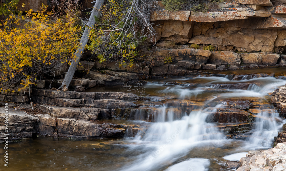 Running water and cascades of Provo river in Uinta Wasatch Cache national forest in Utah
