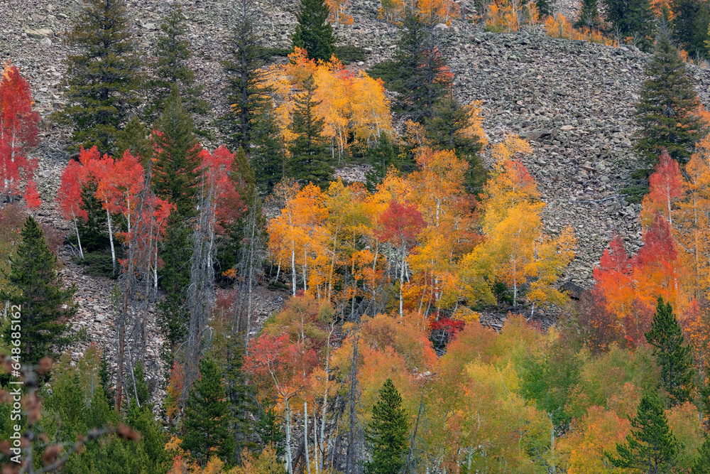 View of Fall foliage at foot hills in Wasatch Cache National Forest, Utah