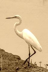 Nature wildlife of cattle egret bird on paddy field