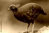 Nature wildlife portrait image of crested partridge (Rollulus rouloul) also known as the crested wood partridge, roul-roul, red-crowned wood partridge on deep forest jungle.