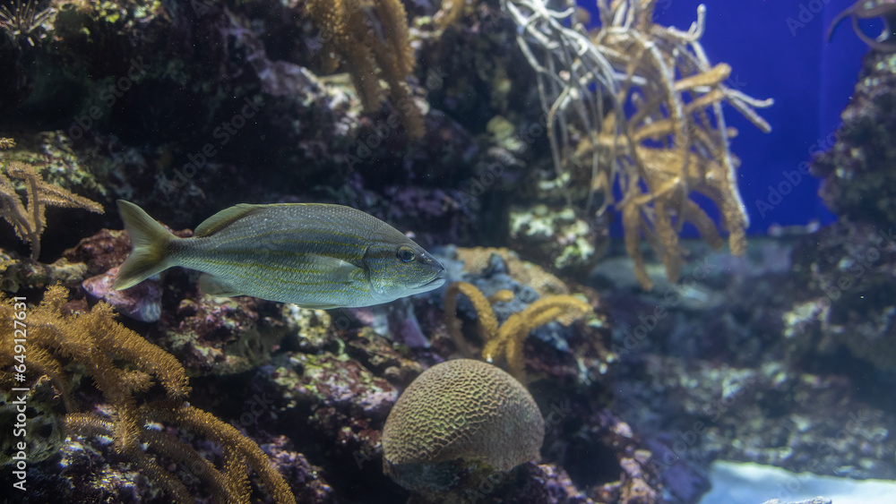 The Tranquil Presence of a White Grunt Exhibiting Elegance in the Aquatic Wonderland of S.E.A. Aquarium, Singapore.