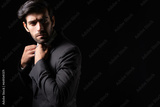 Leader Successful Confident Businessman on black background Businessman wearing suit looking at space with confidence Ceo white collar worker young man wear formal suit Handsome guy is professinal