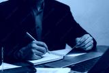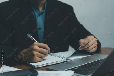 man hands with pen writing journal on notebook in the office.creativity inspiration learning, education and work.writes goals, plans, make to do and wish list on desk.