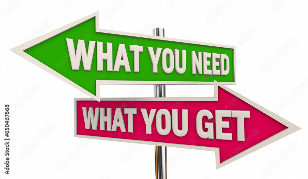 What You Need Vs Get Arrow Signs Customer Satisfaction 3d Illustration