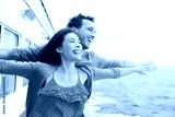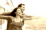 Romantic couple fun in funny pose on cruise ship