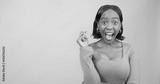 Young woman thinking has light bulb moment, idea, yellow studio background