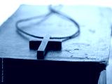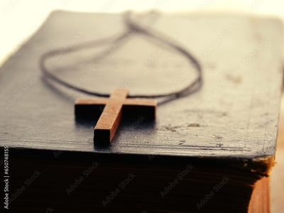 Holy bible with wooden crucifix cross close up
