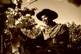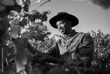 Young black man in brimmed hat smiling while harvesting crops on farm