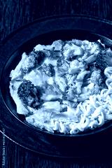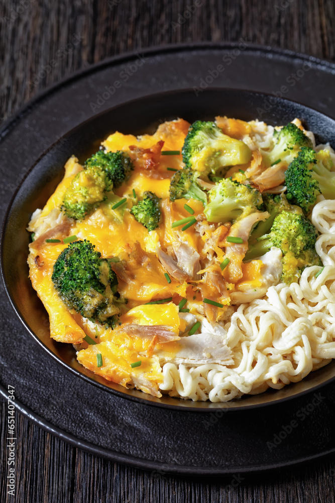 ramen noodle with chicken, broccoli and cheese