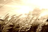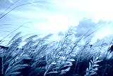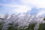 Closeup Focus Blooming Kans grass (Saccharum spontaneum) flowers field with cloudy blu sky