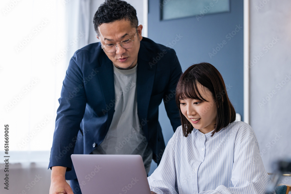 ミーティングをする男女のビジネスマン