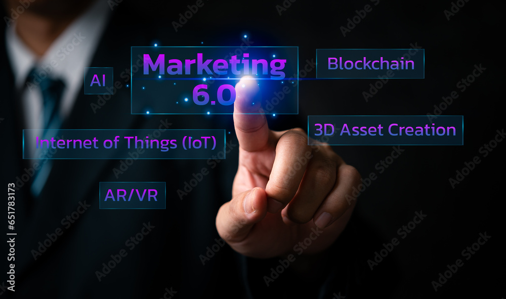 Digital AI Artificial intelligence technology communication network. Business IoT Internet of Things big data and marketing 6.0 concept. Internet future distributed block chain.
