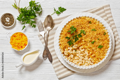 baked mac and cheese topped with panko