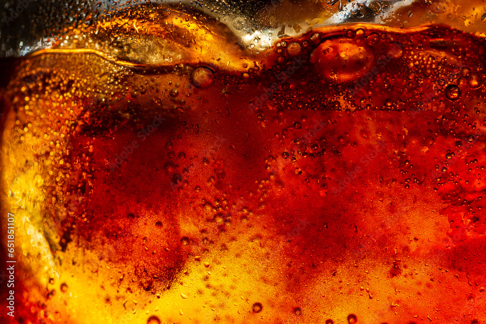 macro cola drink texture,macro cola background,Background of cola with ice and bubbles. Side view background of refreshing cola flavored soda with carbonated with vintage tone,