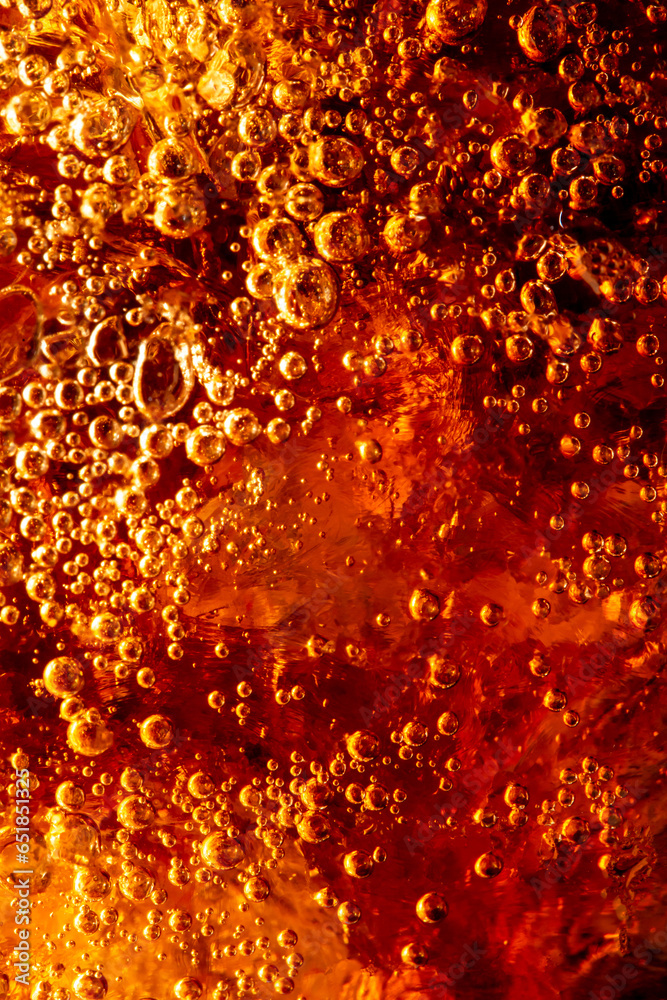 macro cola drink texture,macro cola background,Background of cola with ice and bubbles. Side view background of refreshing cola flavored soda with carbonated with vintage tone,