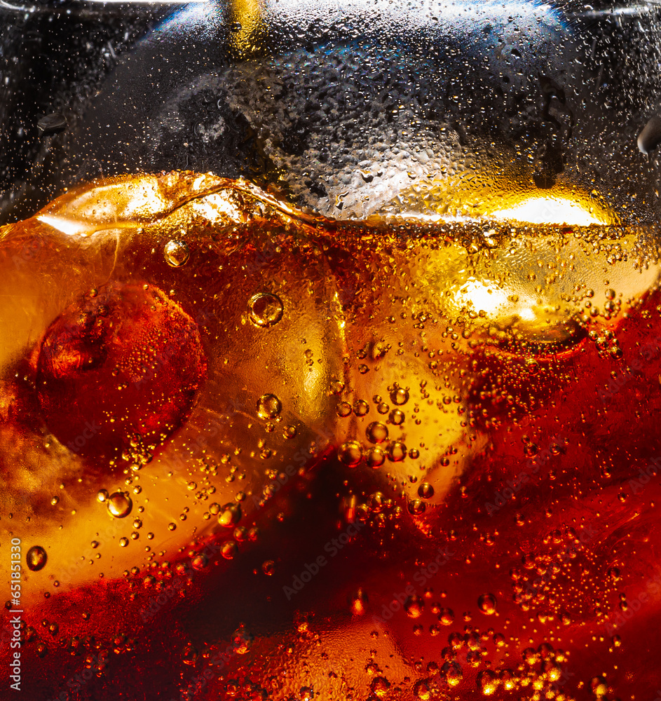 macro cola drink texture,macro cola background,Background of cola with ice and bubbles. Side view background of refreshing cola flavored soda with carbonated with vintage tone,