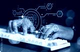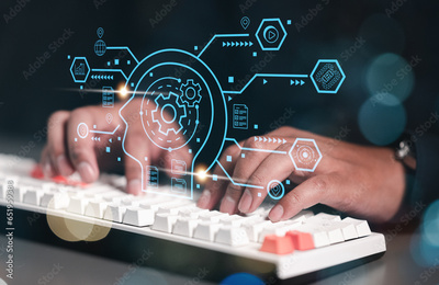 ai, technology, processor, unit, artificial intelligence, gear, innovation, process, training, neural. typing keyboard for training artificial intelligence. ai technology processor unit have gear mid.