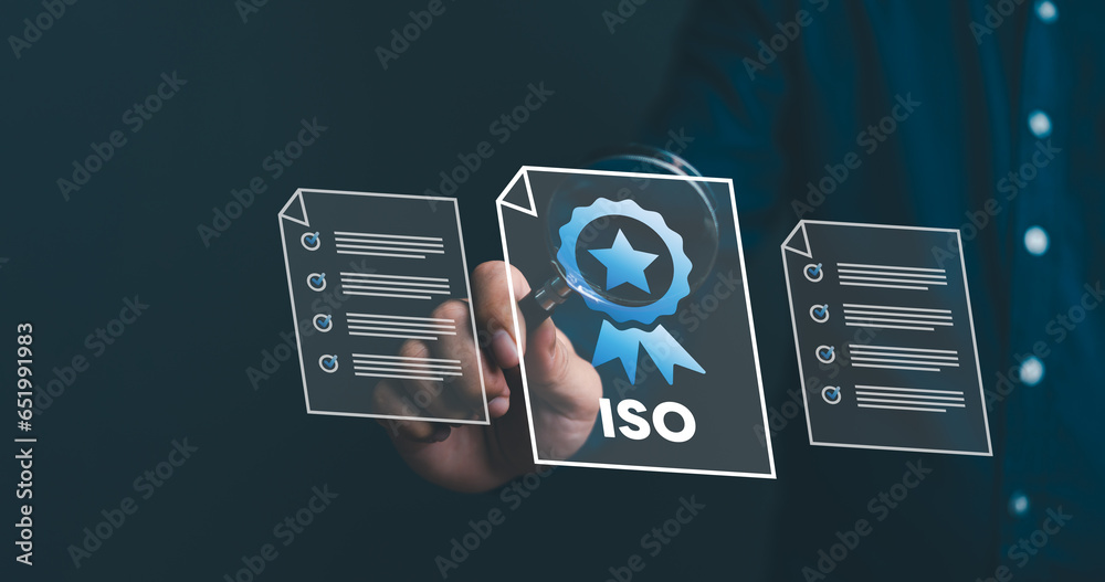 ISO standards quality control assurance warranty concept. Business digital marketing technology certificate, standard, assurance, guarantee.
