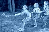 Portrait of young children on a camping holiday