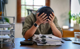Tired asian woman overworking and headache stressed, Chronic migraine..